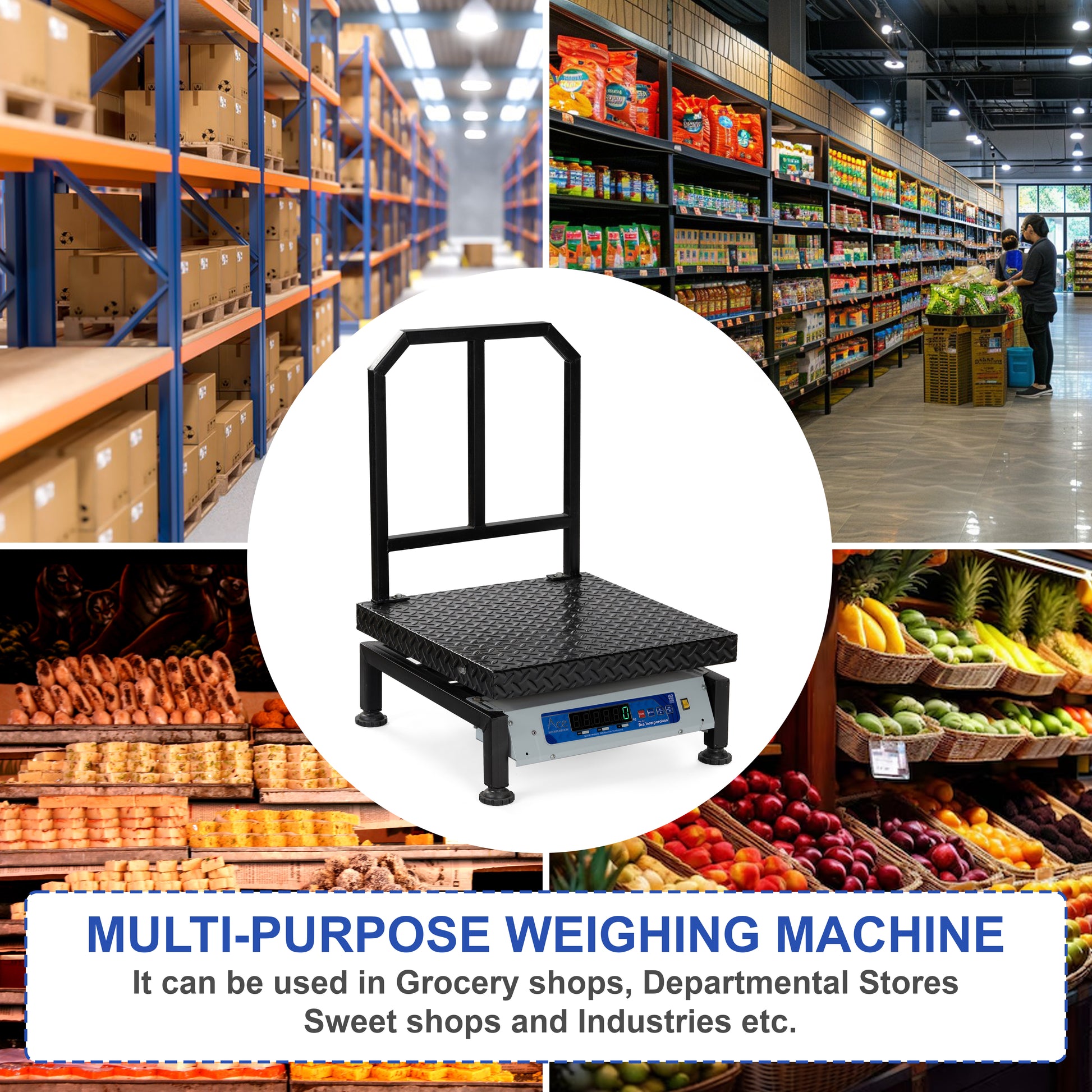 Ace డిజిటల్ ప్లాట్ఫారమ్ తూకం స్కేల్ 500x500mm స్టెయిన్లెస్ స్టీల్ | 120kg సామర్థ్యం, 20g ఖచ్చితత్వం | US F.D.A సర్టిఫైడ్, ISO సర్టిఫైడ్ డిజిటల్ వెయిట్ మెషిన్ షాప్, గిడ్డంగి, పారిశ్రామిక ఉపయోగం కోసం